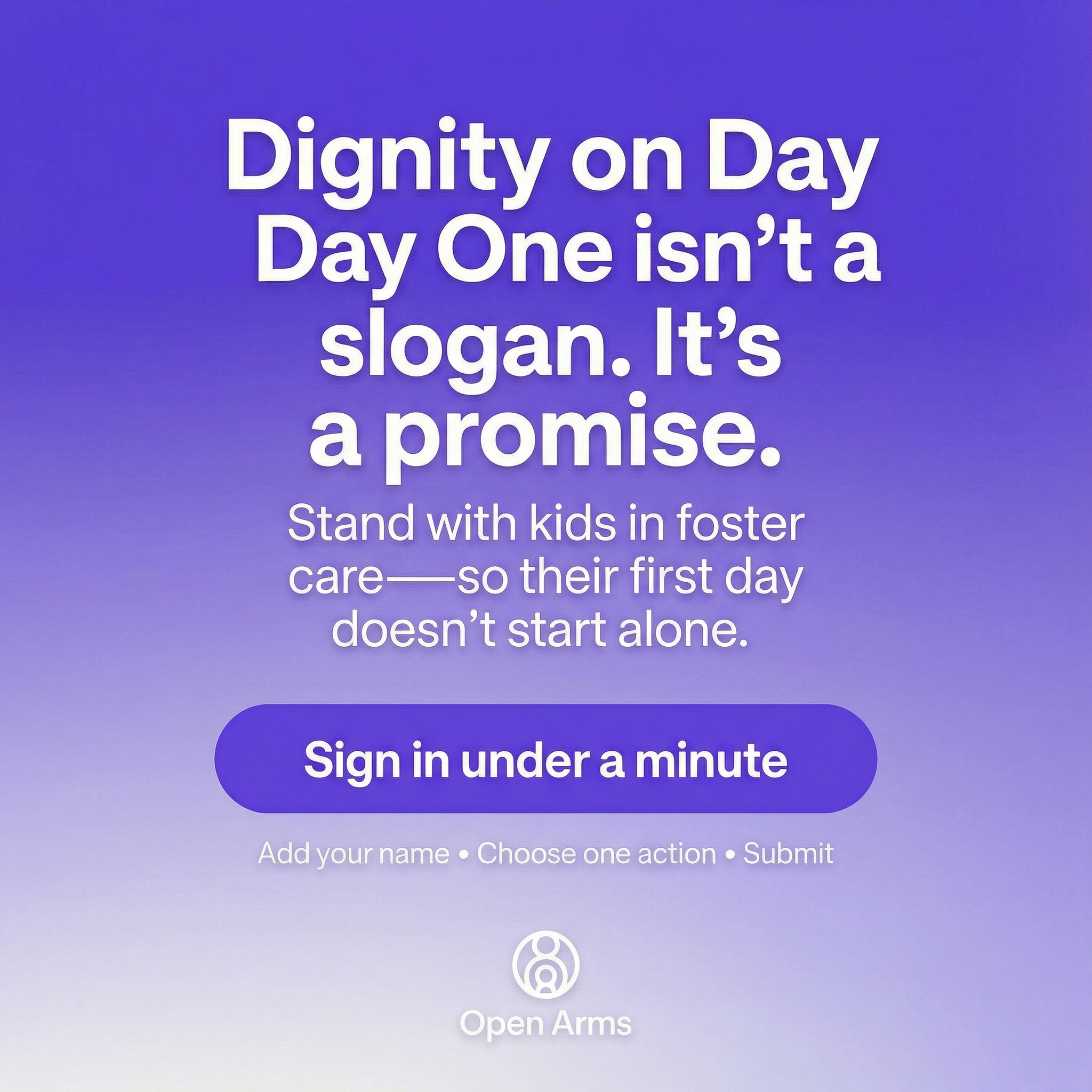 This style applies a semi-transparent color overlay (using your brand’s light or dark color) across a mission-focused image. On top of that overlay, a longer call-to-action (1–2 sentences) is placed prominently.