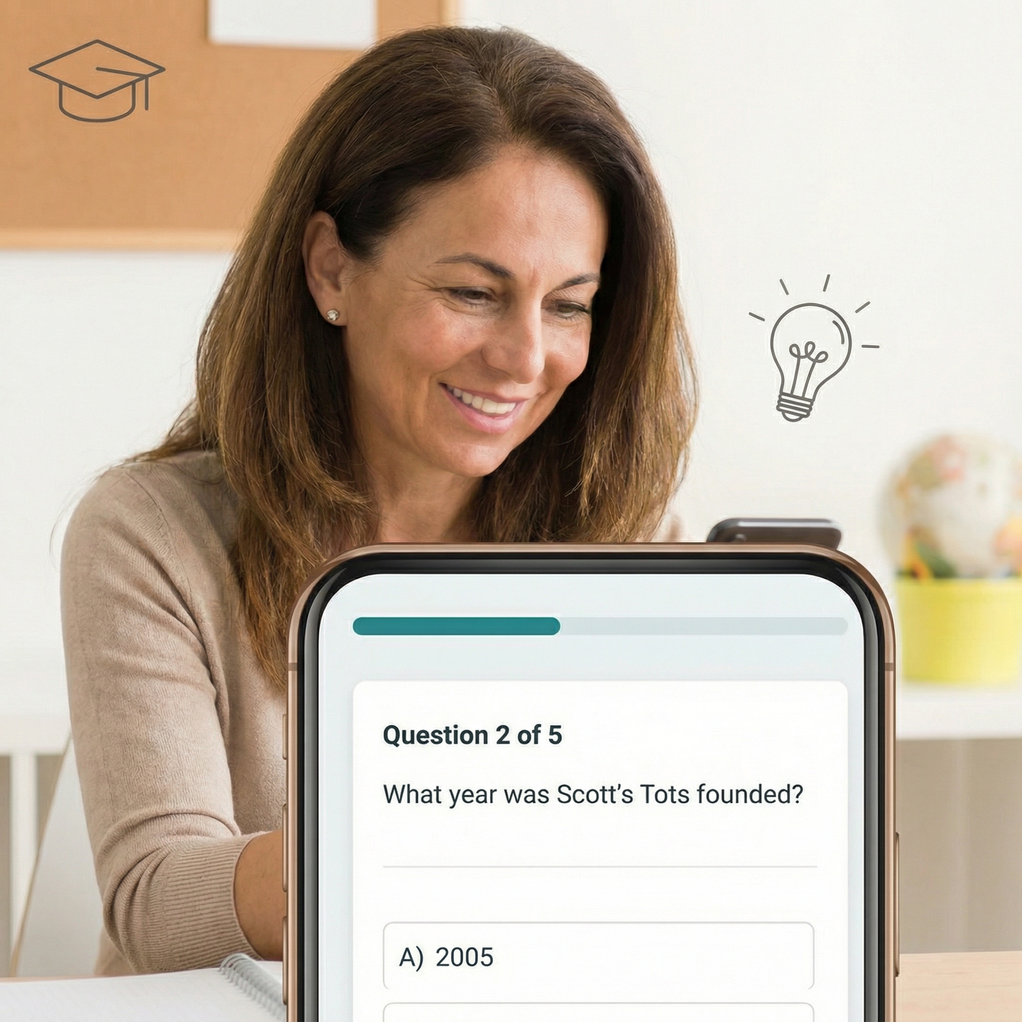 Visual suggestion of interactivity Space for answer options Bright, inviting lighting Friendly and engaging tone